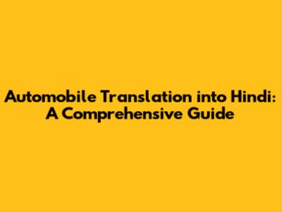 Automobile Translation: English To Hindi Guide