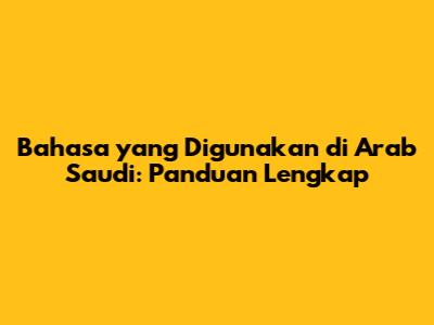 Bahasa Yang Digunakan Di Arab Saudi: Panduan Lengkap