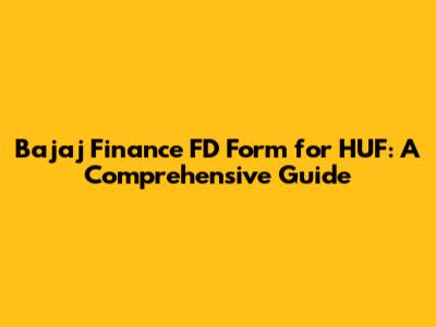 Bajaj Finance FD Form For HUF: A Comprehensive Guide