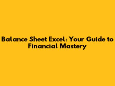 Balance Sheet Excel: Your Guide To Financial Mastery