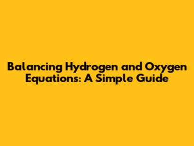 Balancing Hydrogen & Oxygen Equations: A Simple Guide