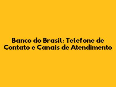 Outros Canais de Atendimento Banco do Brasil