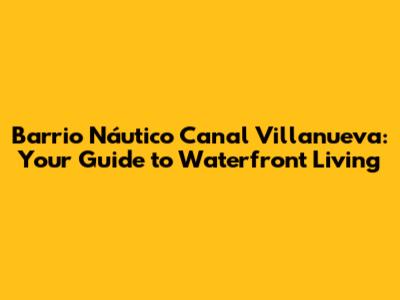 Barrio Náutico Canal Villanueva: Your Guide To Waterfront Living