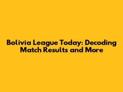 Bolivia League Today: Results & What You Need To Know