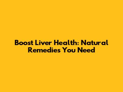 Boost Liver Health: Natural Remedies You Need