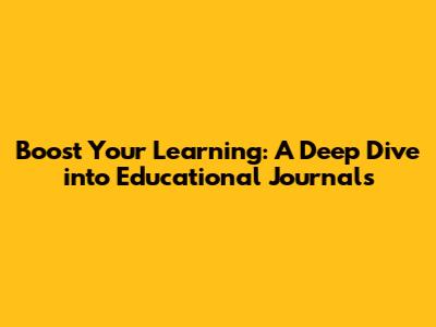 Boost Your Learning: A Deep Dive Into Educational Journals