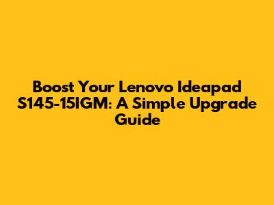Boost Your Lenovo Ideapad S145-15IGM: A Simple Upgrade Guide