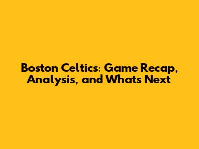 Boston Celtics: Game Recap, Analysis, And What's Next