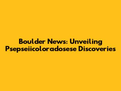 Boulder News: Unveiling Psepseiicoloradosese Discoveries