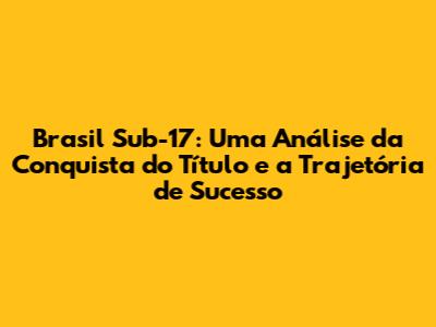 Brasil Sub-17: A Conquista Do Título E A Jornada Vencedora