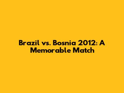Brazil Vs. Bosnia 2012: A Memorable Match
