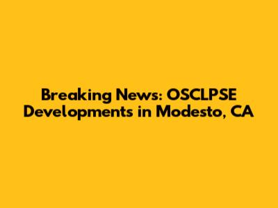Breaking News: OSCLPSE Developments In Modesto, CA