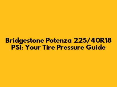 Bridgestone Potenza 225/40R18 PSI: Specifics and Considerations