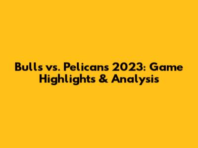 Bulls Vs. Pelicans 2023: Game Highlights & Analysis