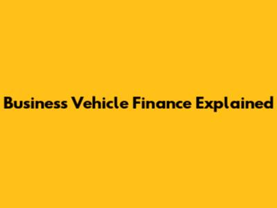 Business Vehicle Finance Explained