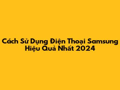 Cách Sử Dụng Điện Thoại Samsung Hiệu Quả Nhất 2024