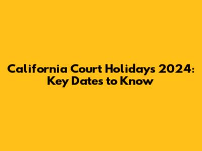 avigating California court holidays in 2024 can be tricky, but don't worry, guys, I've got you covered! Knowing these dates is super important for anyone involved in the legal system, whether you're a lawyer, paralegal, or just someone dealing with a court case. Missing a deadline because you didn't realize the court was closed can cause serious problems, and nobody wants that. This guide will give you a clear rundown of all the California court holidays in 2024, so you can plan accordingly and avoid any nasty surprises. We'll break down each holiday, explain why it's observed, and offer some tips on how to manage your deadlines effectively. Think of this as your essential cheat sheet for keeping your legal affairs on track. We'll also touch on how these holidays might affect different types of court proceedings and filings. Understanding these nuances can save you a lot of headaches and ensure that everything runs smoothly. So, let's dive in and get you prepared for a successful year in the California legal landscape! Remembering these dates will not only save you from potential legal mishaps but also allow you to plan your work and personal life more efficiently. After all, who doesn't love a well-organized schedule? Whether you're scheduling hearings, submitting documents, or simply trying to figure out when the courthouse will be open, this guide will be an invaluable resource. Trust me, a little bit of preparation goes a long way in the legal world. Knowing when the courts are closed can also give you a chance to catch your breath and recharge. Use these holidays as an opportunity to step away from the hustle and bustle of your legal work, and come back refreshed and ready to tackle new challenges. This guide is here to make your life easier, so let's get started and make sure you're fully equipped to handle the California court calendar in 2024.