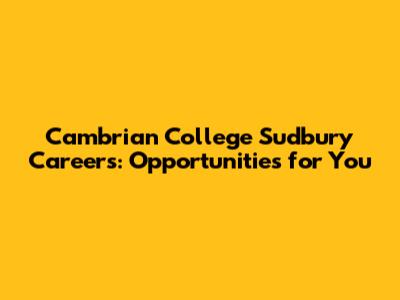 Cambrian College Sudbury Careers: Opportunities