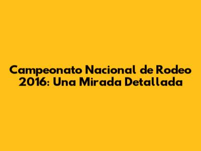 Campeonato Nacional De Rodeo 2016: Una Mirada Detallada