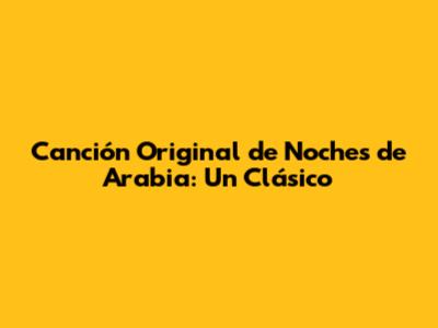 Canción Original De Noches De Arabia: Un Clásico