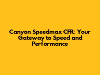 Canyon Speedmax CFR: Your Guide To Peak Performance