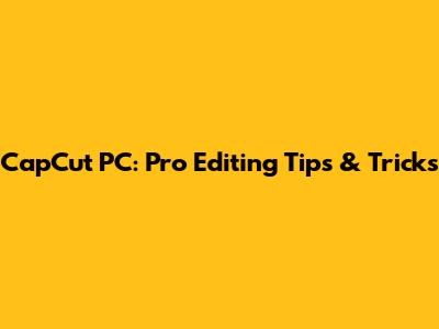 CapCut PC: Pro Editing Tips & Tricks