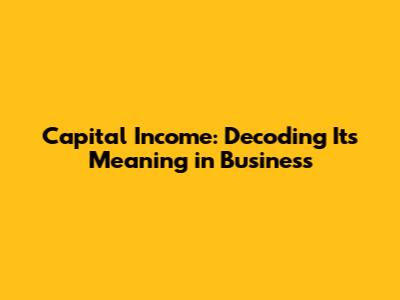 Capital Income: Understanding Its Meaning In Business