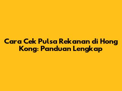 Cara Cek Pulsa Rekanan Di Hong Kong: Panduan Lengkap