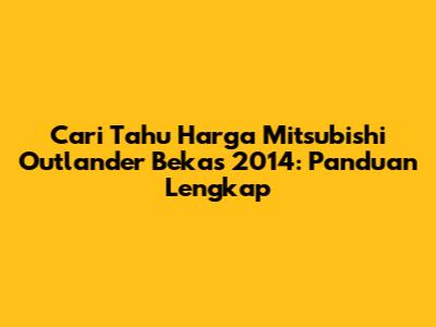 Cari Tahu Harga Mitsubishi Outlander Bekas 2014: Panduan Lengkap