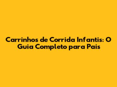 Carrinhos De Corrida Infantis: O Guia Completo Para Pais