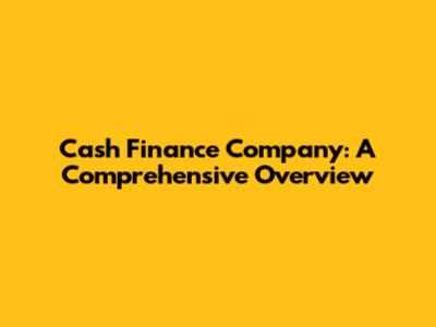 Cash Finance Company: A Comprehensive Overview
