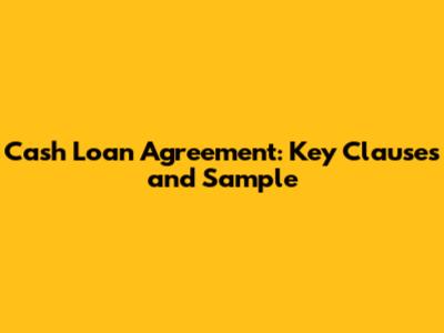 Cash Loan Agreement: Key Clauses And Sample