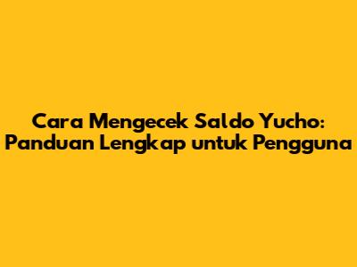 Cek Saldo Yucho: Panduan Lengkap Untuk Pengguna