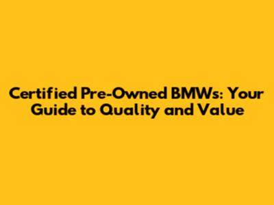 Certified Pre-Owned BMWs: Your Guide To Quality And Value