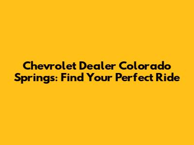 Chevrolet Dealer Colorado Springs: Your Next Car
