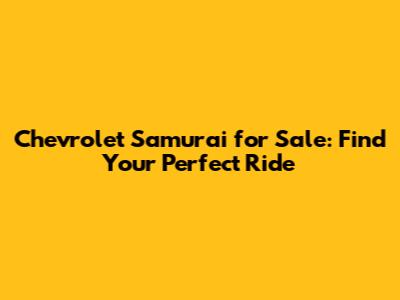 Hey guys! Are you on the hunt for a Chevrolet Samurai? You've landed in the right spot! This compact SUV, a rebadged version of the Suzuki Samurai, is known for its off-road capabilities and simple design. Whether you're an avid off-roader, a collector, or just looking for a unique vehicle, finding the right Samurai can be an exciting adventure. In this article, we'll dive deep into what makes the Chevrolet Samurai so special, what to look for when buying one, and where to find the best deals. Let's get started!