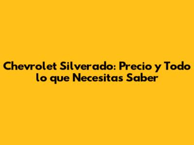 Chevrolet Silverado: Precio Y Todo Lo Que Necesitas Saber
