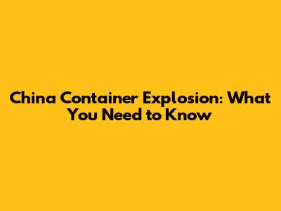 China Container Explosion: What You Need To Know