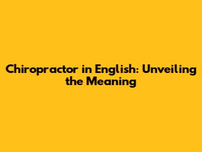 Chiropractor In English: Unveiling The Meaning