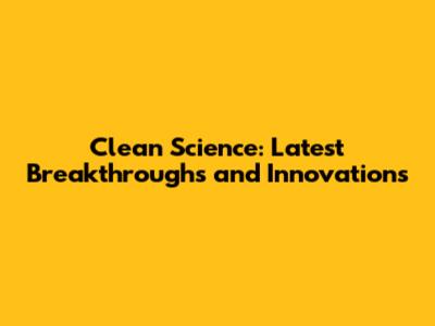 Clean Science: Latest Breakthroughs And Innovations