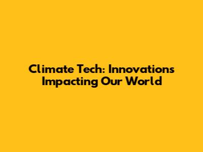 Climate Tech: Innovations Impacting Our World