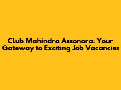 Club Mahindra Assonora: Explore Job Vacancies