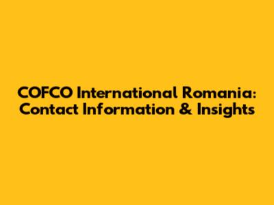 COFCO International Romania: Contact Information & Insights