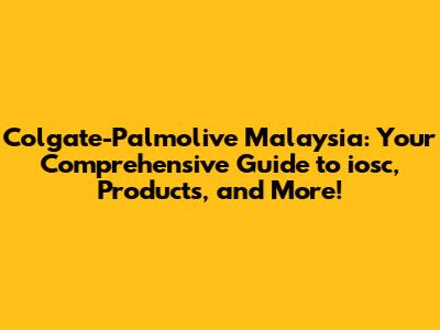 Colgate-Palmolive Malaysia: Your Guide To Iosc & More!