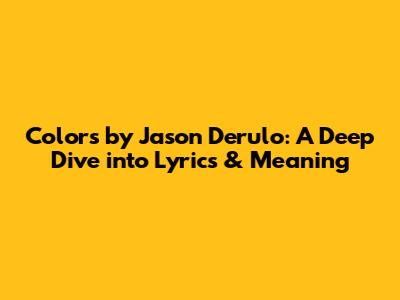 Colors By Jason Derulo: A Deep Dive Into Lyrics & Meaning