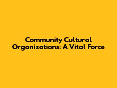 Community Cultural Organizations: A Vital Force