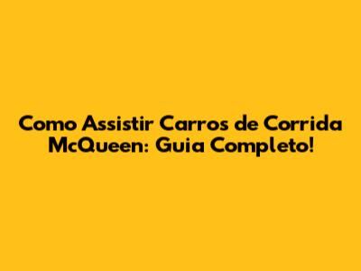 Como Assistir Carros De Corrida McQueen: Guia Completo!