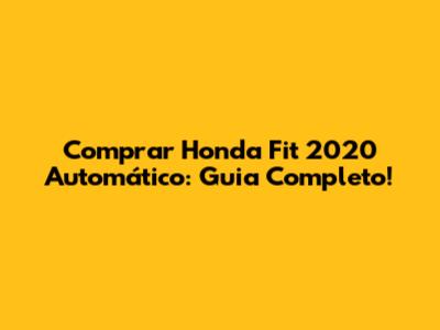 Comprar Honda Fit 2020 Automático: Guia Completo!