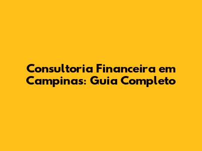 Consultoria Financeira Em Campinas: Guia Completo