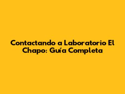Al seguir estos consejos, podrás contactar al Laboratorio El Chapo de manera efectiva y obtener la información y los servicios que necesitas. ¡Buena suerte!